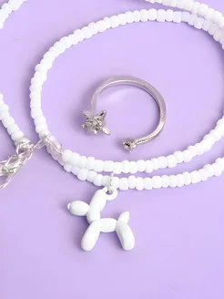 Чокер из бусин с кулоном "Собачка из воздушных шаров" y2k
