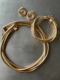 Набор бижутерии колье обруч на шею с браслетом и серьгами