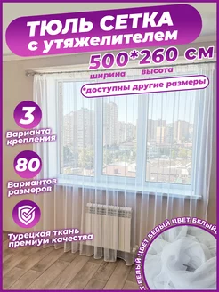 Тюль сетка белая готовая 500х260 см с утяжелителем