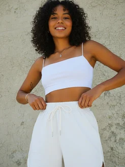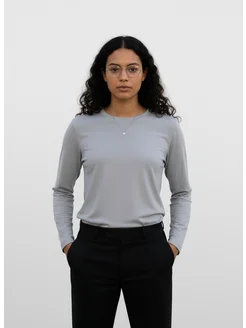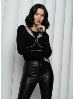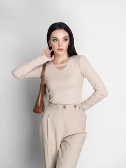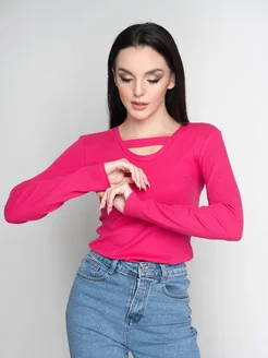 Лонгслив в рубчик лапша облегающий с вырезом базовый