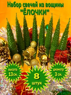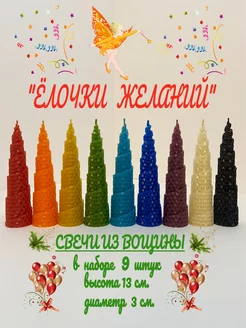 Свечи Елочки из натуральной вощины разноцветные новогодние