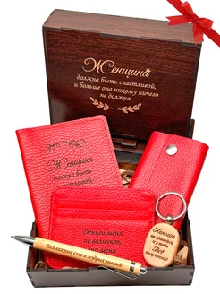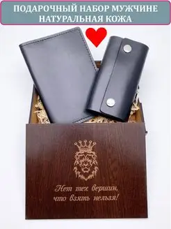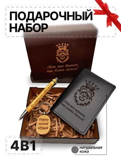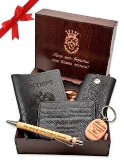Подарочный набор из кожи бокс в деревянной коробке