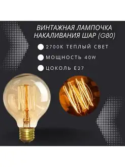 Ретро лампочка накаливания Эдисона Е27 40 Вт