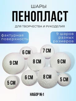 Шары из пенопласта 5, 6, 7, 8, 9 см 9 штук