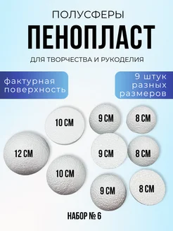 Полусферы из пенопласта 8, 9, 10, 12 см 9 штук