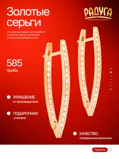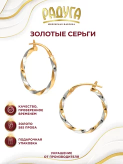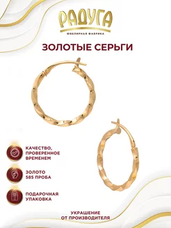 Классические золотые серьги - кольца 585 диаметром 25мм