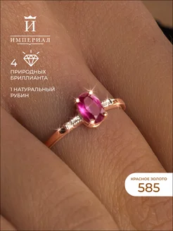 Кольцо золотое 585 пробы с рубином и бриллиантами
