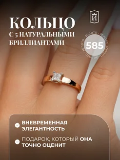 Кольцо золото женское 585 помолвочное с 5 бриллиантами