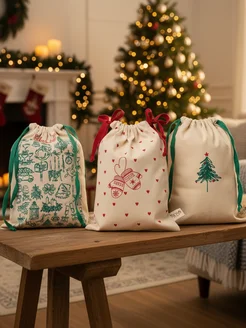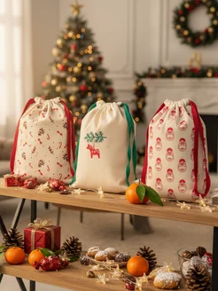 Мешочек подарочный с принтом, комплект 3 штуки