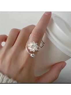 Кольцо цветущий лотос с бутоном медицинский сплав