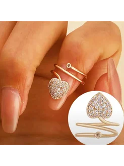 Кольцо пружинка на фалангу ноготь пальчика с сердцем
