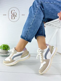 Кроссовки на высокой подошве из натуральной кожи