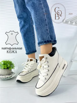 Кеды кожаные на высокой подошве
