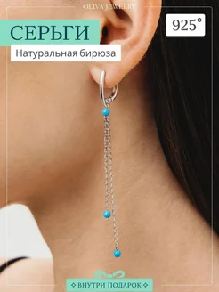 Серьги серебро 925 вечерние длинные натуральная бирюза шар