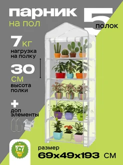 Парник усиленный напольный Маргарита, 5 полок белый, 193 см
