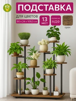 Подставка для цветов напольная МДФ (орех), 13 мест