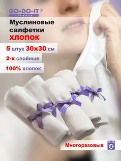 Салфетки (полотенца) косметические муслиновые. Набор из 5шт