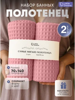 Полотенце банное вафельное 70х140, набор 2 шт Розовый