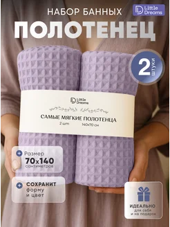 Полотенце банное вафельное 70х140, набор 2 шт Лаванда