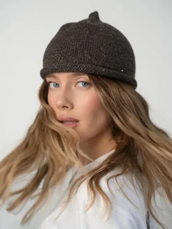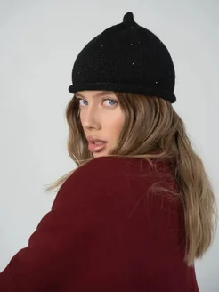 Шапка с пипкой вязаная осенняя-весенняя пайетки