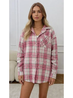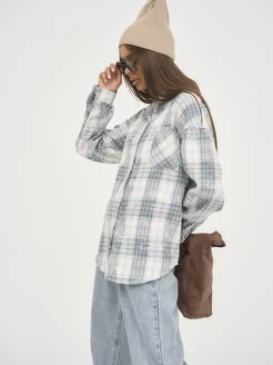 Рубашка женская теплая в клетку оверсайз удлиненная