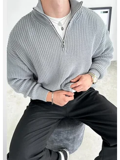 Свитер оверсайз теплый вязаный на молнии с воротником
