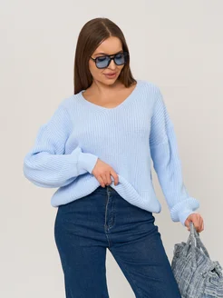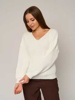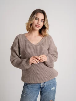 Женский вязаный свитер. Кофта с V-образным вырезом