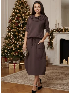 Платье трикотажное на осень бохо макси Т. Зеленое