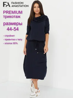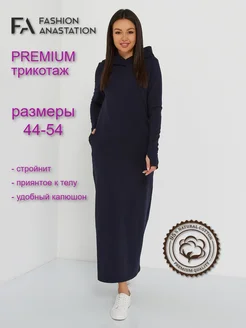 Платье худи женское с капюшоном темно-синее спорт теплое