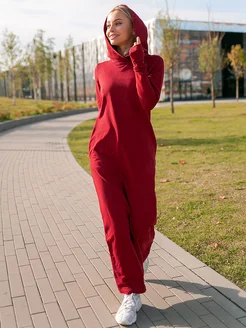 Платье худи женское с капюшоном бордовое спортивное теплое