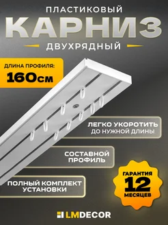 Карниз для штор потолочный двухрядный составной ПВХ 160 см