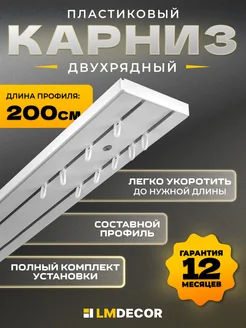 Карниз для штор потолочный двухрядный составной ПВХ 200 см