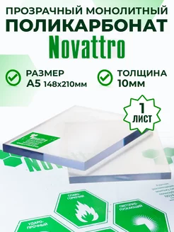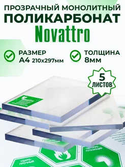 Монолитный поликарбонат прозрачный 8 мм А4 5 листов