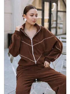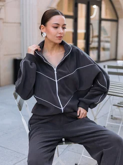 Спортивный костюм теплый оверсайз флисовый на молнии
