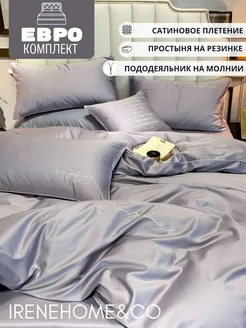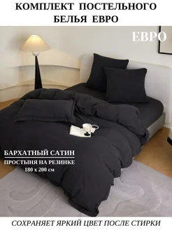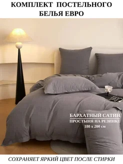 Постельное белье евро на резинке 180х200 бархатный сатин