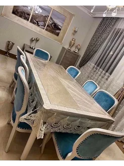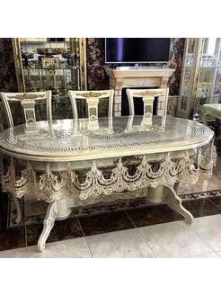 Скатерть круглая лен с кружевами и вышивкой 180 см