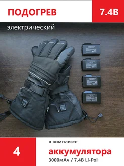 Перчатки зимние подогрев 4 аккумулятора 3000мАч горнолыжные