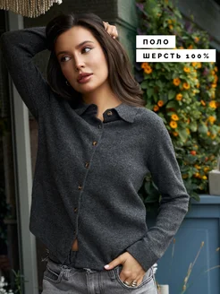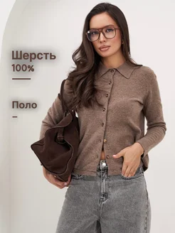 Кардиган кофта поло на пуговицах шерстяной тонкий