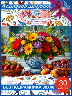 Алмазная мозаика кухонный сервиз гжель. 30 на 40