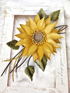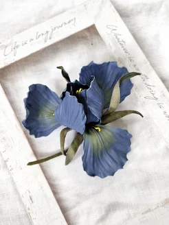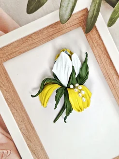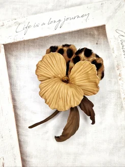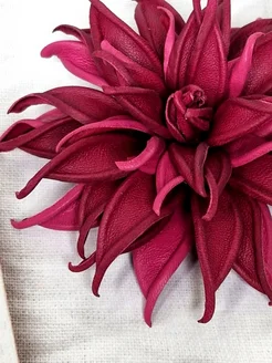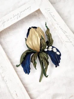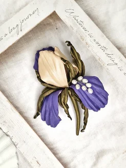Брошь " Ирис" из натуральной кожи c жемчугом Ручная работа
