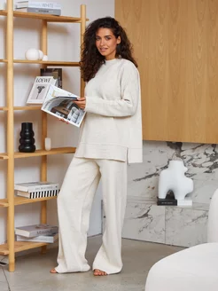 Костюм вязаный теплый с брюками палаццо на осень