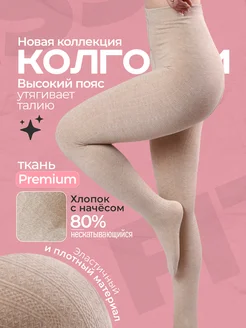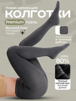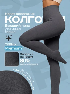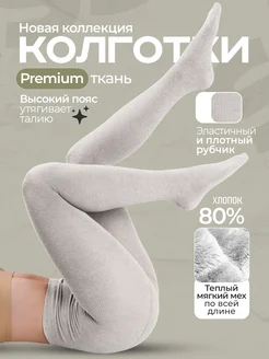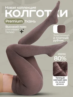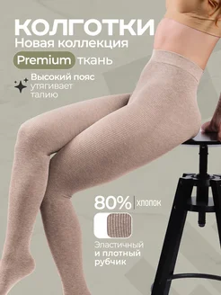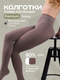 Плотные колготки с рисунком рубчик теплые из хлопка