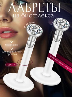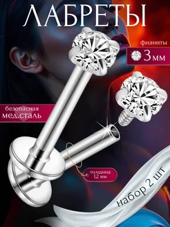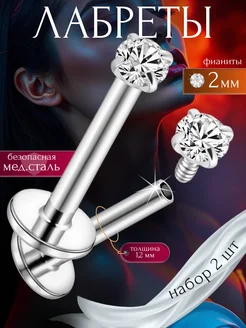 Лабрет 6 мм с камнем пирсинг и серьги в ухо и нос и хрящ
