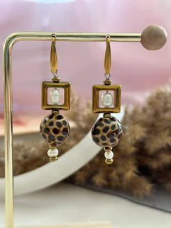 Серьги с жемчугом и леопардовой бусиной