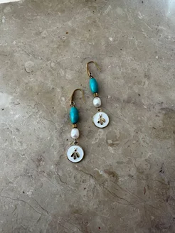 Серьги "Пчела" с бирюзой