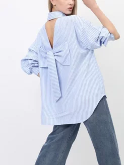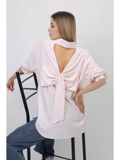 Рубашка оверсайз удлиненная бабочка широкая полоска