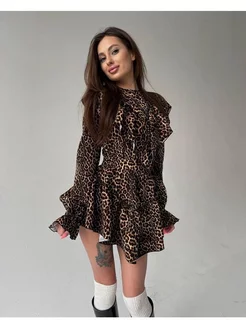 Платье леопард коктейльное тонкое ткань прада