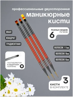 Кисти двухсторонние для маникюра и дизайна ногтей 3 шт