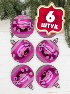 Набор ёлочных шаров 6 штук, цвет сиреневый, диаметр 6 см