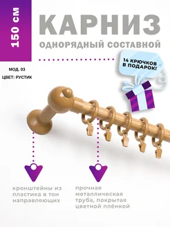 Карниз настенный однорядный составной 150 см мод.03